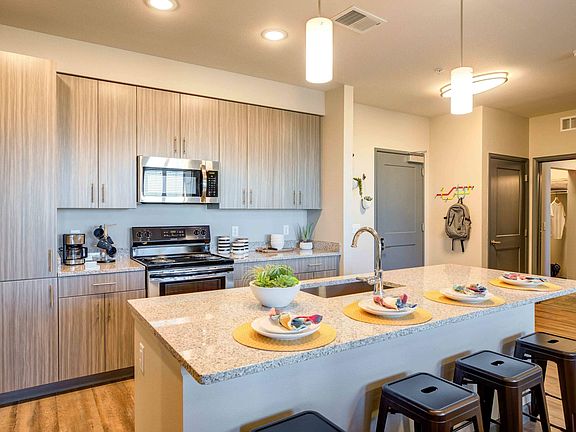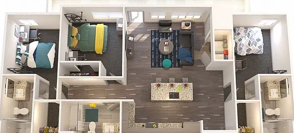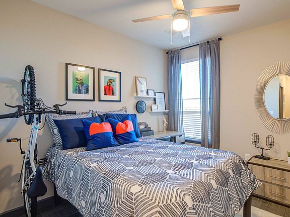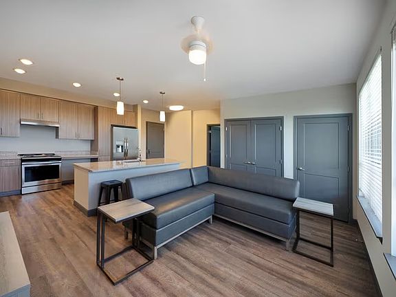 Newer student apartment with several amenities. Directly across from campus and situated in the Campus West shopping center. Easy access to public transportation. Fully furnished room includes a bed, desk, desk chair, and dresser. Private bathroom with a full sized shower and tub. Kitchen includes a full fridge, oven, dishwasher, microwave, island, and plenty of cabinet and pantry space shared with two other roommates. Tenants also share a fully furnished living room, balcony, and in-unit washer and dryer. Amenities include free WiFi, AC and heat, fitness center, study room, clubhouse, pool, and hot tub. Term available from 11/01 to 07/31 with the option to renew for the '26-'27 term. Utilities paid with rent. Optional parking passes. Pet friendly. Individual leases.