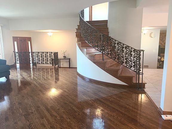 Large home on cul-de-sac in popular Farmwood Estates! Impressive Ornate wrought iron handrailing on winding staircase, gleaming hardwood flooring, 1st floor painted light grey this week! 4 large bedrooms up, plus an office on the main floor. Original kitchen and 2 baths, master bath updated. Laundry room has separate walk-in shower as you enter from garage, making this a great set-up for cleaning pet paws! Floor to ceiling sparkling flagstone fireplace in family room. Off family room is a very nice 3 season room. Carpeting approx. 2 years new. 1912 sq. ft. basement is semi finished with most drywall, painted flooring, and a large unfinished are for storage. Deep pour, 8' ceiling. Home has a deck and 15' round pool, liner approx. 5 yrs. Shed for lawn storage. Roof, furnace and air approx. 2 yrs new.