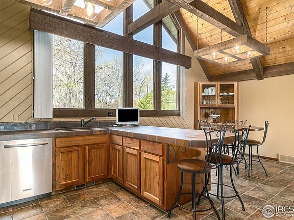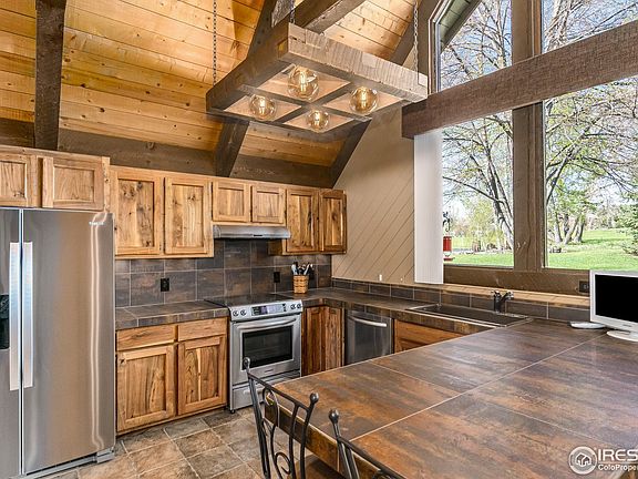 No more showings. Peaceful and Private ~ Country Living in West Loveland ~ Just minutes from downtown! Relax on over 2.5 acres of serenely beautiful grounds & gardens with partial views of Boedecker Lake. This stunning home features 3 bedrooms (2 master suites); 3 baths; Updated kitchen with stainless appliances; Updated & luxurious master bath retreat with radiant floor heat; Gas fireplace in living room; Electric fireplace in family room; High ceilings with wood beams and walls of windows.