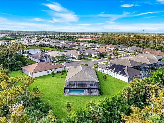 Welcome to a rare opportunity — a stunning residence set on the largest lot ever sold in Valencia Trails, offering unmatched space, privacy, and prestige, an elegant, modern sanctuary that blends luxury, comfort, and timeless style. Tucked away on a quiet cul-de-sac and situated on an expansive pie-shaped lot, this exceptional residence offers high-end finishes, thoughtful upgrades, and sophisticated amenities designed for both everyday living and effortless entertaining. Step inside and be captivated by the bright, open-concept layout that seamlessly connects the living and dining areas, creating a warm and inviting atmosphere. At the heart of the home is the gourmet chef’s kitchen, showcasing premium appliances, custom cabinetry, and an oversized island that serves as the perfect centerpiece for gathering. Throughout the home, custom details elevate every space—from specialized closets and built-in cabinetry in the den and living room to a stunning center island in the primary bath and a custom Murphy bed in the fourth bedroom. This impressive property features four spacious bedrooms, each with its own en-suite bathroom for maximum privacy and convenience. A stylish powder room adds functionality for guests. The home’s outdoor living space is truly a showstopper, ideally placed to capture southeastern exposure while offering remarkable privacy on its rare oversized lot. The expansive covered lanai provides an exquisite setting for lounging or entertaining, complemented by a luxurious outdoor kitchen perfect for alfresco dining. Enjoy the sparkling pool surrounded by lush landscaping, and soak up the Florida sunshine from your own secluded retreat. Modern conveniences abound. Both garages are equipped with split A/C units, custom cabinetry, epoxy flooring, and electric car charging receptacles. A whole-house water filtration system ensures clean, fresh water throughout, while storm screens and a full-home generator offer peace of mind during inclement weather. Located in the highly sought-after community of Valencia Trails, residents enjoy access to an unparalleled lineup of resort-style amenities. The 43,000-square-foot clubhouse features a full-service restaurant and bar, theater with live shows, state-of-the-art fitness center, card rooms, cooking studio, and spa. Outdoor amenities include a dog park, bocce, pickle-ball and tennis courts, a resort-style pool, lap pool, and private cabanas. This elegant home invites you to experience refined comfort in one of the most vibrant and exclusive communities in the area. Don’t miss this unique opportunity.