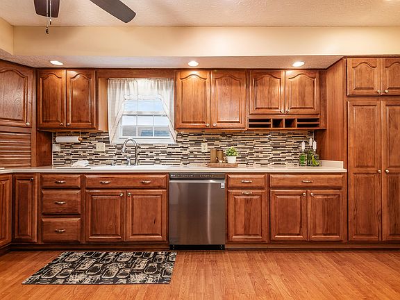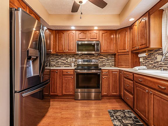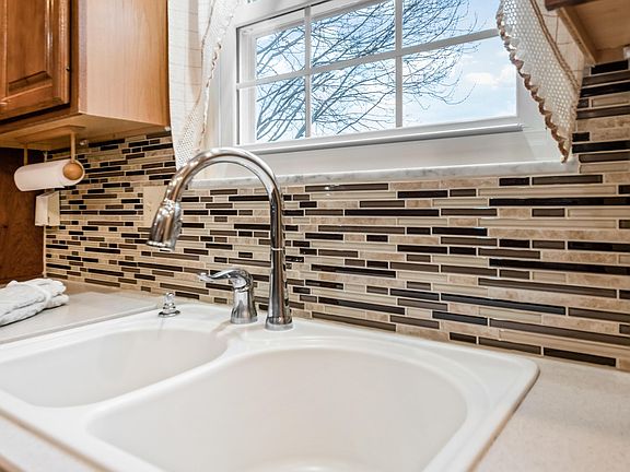 Discover this beautiful brick home boasting 3 bedrooms and 2 full bathrooms, perfect for comfortable living. The heart of the home is the updated kitchen, featuring Corian countertops, stylish tile backsplash, and newer black stainless appliances. The spacious owner's suite has a full private bathroom. Enjoy your evenings in the inviting great room with vaulted ceiling and striking brick fireplace. If you need more living space travel down to the lower level for 450 additional sqft of finished space! Relax in the cozy 3 season room that opens to a spacious deck and concrete patio with retractable awning - ideal for entertaining or relaxing. Concrete driveway w/ side extension for more parking! Cul-de-sac! New roof 2023! A/C 2019! Water heater 2022! Appliances 2021! Home Warranty!