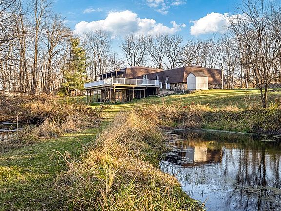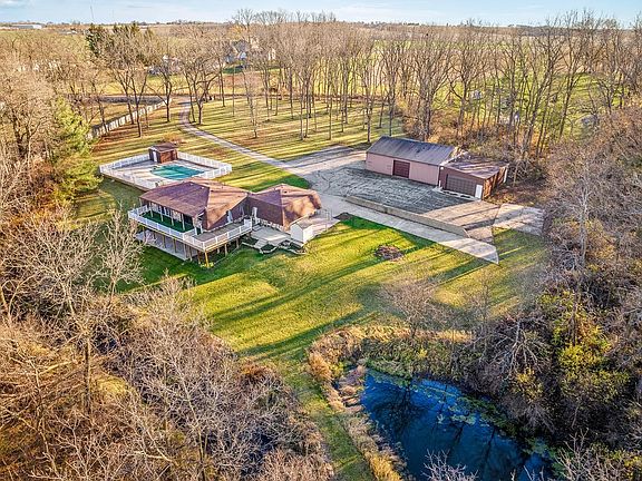 Deal fell through at no fault to the seller! Now is your chance! Lovely CREEKSIDE home NOT in a flood zone, an IN-GROUND POOL, and a 2,250 sq ft OUTBUILDING all on 4.27 WOODED ACRES! Discover the perfect blend of tranquility and functionality in this stunning property, nestled on 4.27 wooded acres with picturesque creek views and a serene small pond. This home is a true nature lover's paradise, offering beautiful water views from the large sliding doors in both the living room and kitchen. The property includes a 2,250 square foot outbuilding, complete with heating, water access, a large vehicle lift, and a brand-new garage door installed in 2024. It's an ideal space for car enthusiasts, hobbyists, or as a workshop. Enjoy summer days by the in-ground pool, complete with an epoxy-coated surround, maintenance free fence and a built in gas grill! The pool is equipped with a new filter (2023), pump (2022), and liner (2021). The property also features a convenient pool house for additional storage. The open and inviting living space includes a large living room, adjacent to the open kitchen, which boasts granite countertops and ample storage, making it perfect for both everyday living and entertaining. The expansive sliding doors provide breathtaking views of the surrounding nature. Each bedroom is generously sized, offering comfort and space for everyone. The finished walk-out lower level is an excellent area for entertaining guests or creating a cozy family retreat. Enjoy the updated, modern bathrooms that add a touch of luxury to this charming home. The property has numerous updates, including an epoxy-coated garage floor (2020/2021), a new roof and skylight (2020), a Kohler whole-house generator (2021), a professionally, constructed roof overhang (2020), and a new attached garage door (2021). A new, cedar fence installed in 2019 provides privacy. The home is conveniently located near essential amenities, schools, and parks. Don't miss the opportunity to own this lovely home with its serene surroundings, modern amenities, and abundant space. It's a true gem for those seeking a blend of nature, comfort, and functionality. Schedule a viewing today and make this beautiful property your own! Some photos have been virtually staged.