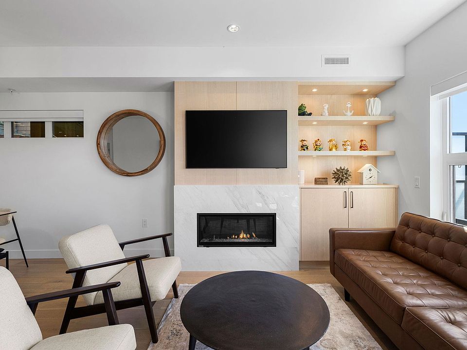 STEVESTON LUXURY CONDO LIVING – Where the timeless charm of Steveston Village meets innovative contemporary design. The ultra-exclusive BOUTIQUE Roderick offers only 32 signature residences. This coveted END CORNER HOME boasts an ultra-functional layout with TALL 9’ CEILINGS & expansive windows that flood the space with natural light. Masterfully designed by GANNON ROSS DESIGNS, the interiors strike the perfect balance between modern sophistication & timeless elegance. Premium finishes include wide plank engineered hardwood, wool-blend carpets, Hunter Douglas roller blinds, stone countertops, & custom wood-veneer cabinetry. Complete with full air conditioning and an EV-ready charger, this is elevated living in the heart of Steveston. Enjoy LARGE 171 SF FRONT PATIO & COVERED 194 sf BALCONY.