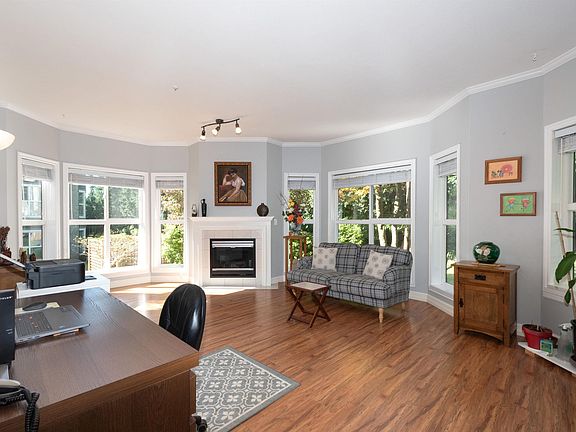 Corner locationExtra large floor planBay windowsCozy patioLush greenbeltQuality laminate flooringCrown moldings