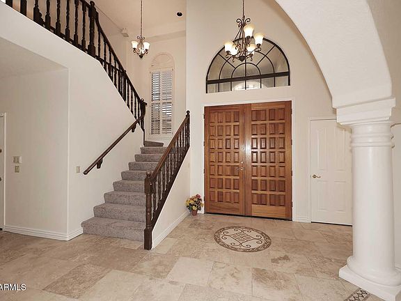 WOW! PANORAMIC MOUNTAIN VIEWS and city lights! So many luxury upgrades - Sub-Zero built-in fridge, new microwave/oven, granite countertops throughout the house, Travertine floors downstairs, new carpet upstairs, freshly painted, huge master suite with a two-way fireplace, sitting area & private balcony! Custom cabinets, wet bar, privacy, backs to wash, flagstone patio, built-in BBQ, and so much more. Perfect family home w an open floor plan w stairs entry from 2 sides, a loft for family entertainment. The family room has a beautiful built-in bookcase and a custom stone fireplace with a wood mantle. Diving Pool w/ kid-safe fence ready for installation, heated Spa, and bathroom access. Large office/bedroom downstairs. Did I mention the VIEWS?