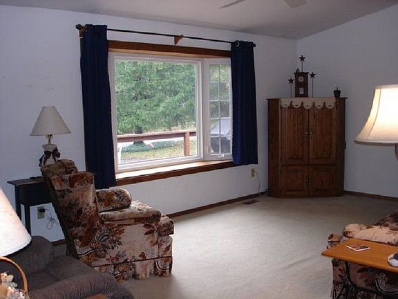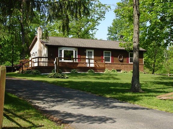 YES, YOU CAN HAVE 4 HORSES! RARE FIND! Very affordable RANCH home on over 2 ACRES in a serene setting w/ numerous outbuildings, including horse stable! Country kitchen w/ stainless steel appliances! Sunny DR & large LR w/ cathedral ceiling! Full bsmt w/ finished room, flue for wood stove! Wrap-around deck! *Neat as a pin & ready to move in!*