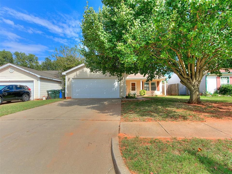 HONEY STOP THE CAR! The OPEN floor plan style of this home is so inviting the minute you walk in the front door, it feels so warm and big. Huge open living, dining and kitchen, with high vaulted ceilings, lots of windows to let the sunshine in. So many Updates; HVAC, Newly painted popular gray color and flooring throughout! New appliances, New Impact resistant Roof 2024. Kitchen has pantry. This is a MIL plan, primary has full bathroom and a Walkin closet that is big enough it could be an office! Secondary bedrooms are spacious. Inside laundry room. (Refrigerator, washer and dryer can stay with good offer). Two car garage with a Storm Shelter! Huge covered front porch. Beautiful tree in front yard for shade. Fenced in back yard. Home has easy access to shopping, hospitals, entertainments, Lakes, and more. Buyers to verify schools and square footage of home. Call for your private viewing!