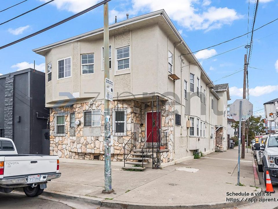 Welcome to 1209 Campbell Street, Oakland, CA 94607, a charming apartment nestled in a vibrant neighborhood. This residence blends convenience with modern living, offering a perfect retreat for those seeking a comfortable and stylish environment. The building's exterior showcases a classic stone facade with a striking red door, setting a welcoming tone as you arrive. Inside, you'll find a bright and airy living space with freshly painted walls and sleek laminate flooring, creating a contemporary atmosphere that's easy to maintain.