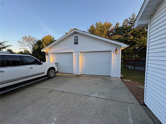 Exterior amenities include a detached 2-car garage and a private backyard with an above-ground pool. Conveniently located near schools.