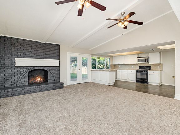 Adorable cabinetsBeautiful brick hearthGas rangeNew roof