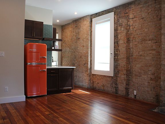 Each unit features exposed brick, hardwood flooring, quartz countertops, high-end appliances and stunning Rookwood Pottery tile work.