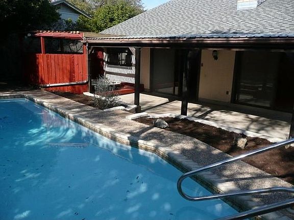 Great remodel with sparkling pool, hot tub and deck in a fantastic backyard. Inviting courtyard with seating area at entryway. This home is great for entertaining with the beautifully updated kitchen with granite, stainless steel appliances, custom stone/glass backsplash, fantastic huge windows throughout, high ceilings, stunning floor-to-ceiling free-standing brick fireplace in spacious living area with vaulted ceiling and cooling ceiling fans. Great outdoor living with a long covered back patio leading to the pool and cabana with hot tub. Large lot on culdesac with towering trees in established family neighborhood. Inviting and open floorplan.