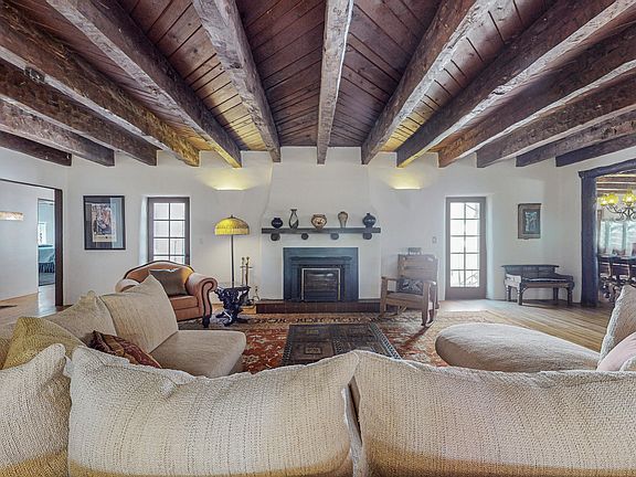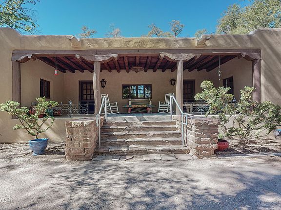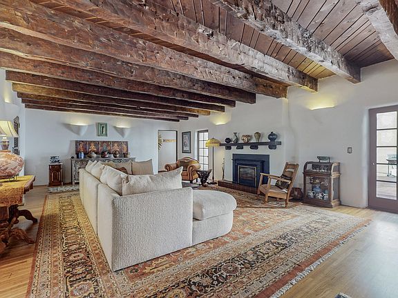 Amazing one story, 4103 sf Pueblo style adobe with 4 bedrooms & 2.5 baths built in 1939 around a large courtyard - a true hacienda plan. Oak, pine and flagstone floors, grand fireplaces, huge vigas and beams throughout, large spacious rooms. Home is on 3.07 acres of land with city water and sewer and has been irrigated from adjacent MRGCD ditch. MRGCD dues are current. Lots of room for urban farming and additional structures. Home was designed by the owner's grandmother on a truly grand scale for gracious living. Recent renovations have included a new kitchen, remodeled primary bathroom, replacement windows, electrical upgrades and newer heating and cooling systems. Property in Bernco not ABQ for taxes etc. Come make this treasure your own!
