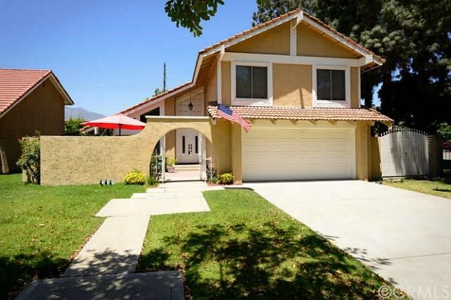 Gorgeous! This home has been entirely renovated and is in totally move-in, turnkey condition. Enter through the beautiful courtyard to find double leaded glass entry doors. Open them to be delighted by the soaring ceilings and numerous windows that let in an abundance of natural light. The ceilings have been scraped, there is fresh paint and beautiful tile and wood floors. Everything is immaculate! The living room and dining rooms are open and bright. The kitchen has been renovated to included newer appliances, granite counters and lots of updated and spacious cabinetry. There is a kitchen nook area and an adjoining family room that offers a cozy fireplace and creates a great room effect. The downstairs powder room has also been updated and boasts a granite counter and new fixtures. Upstairs you will find three very spacious bedrooms as well as updated bathrooms. There is a ton of closet space throughout the house. There are also Plantation shutters throughout and many thoughtful amenities to help make this home even more desirable. The backyard is spacious and offers a perfect area for summer fun. The retractable awning provides shade for the patio area. Close to shopping with easy freeway access, this home is a must see! Don't wait!