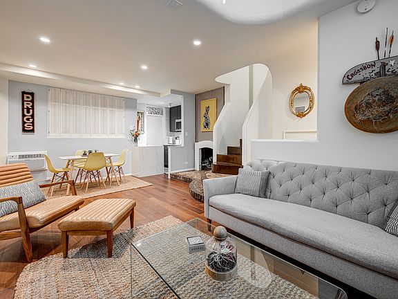 Turnkey Gold Coast ground floor updated 1 bed/1 bath duplex-up in the rare "Frank Fisher Studios", historically landmarked by the City of Chicago and an architectural gem in the heart of the Gold Coast - Steps to Division St, Rush, Michigan Ave; shopping, bars, & restaurants; the lakefront, Oak St Beach, & Lincoln Park. Convenient access to public transport. Nestled in a peaceful lush courtyard setting complete with fountain and fire pits and exuding style, charm, and sophistication. These incredibly unique homes feature two levels of living. This newly updated in 2022 unit offers an open concept living & dining room with compact kitchen, Sub Zero Fridge Freezer, Bosch Oven, Bosch Cooktop Microwave, Dishwasher and Quartz countertops and waterfall feature, two story atrium, 20' ceilings with curved staircase to second floor with an office nook, bathroom & bedroom in the lofted space above. With secure access gate entry required to access the courtyard and building, unit is conveniently located on the ground level. Parking options directly right next door to the building at 1221 N State Parkway, permit parking, private garages, valet, and indoor and outdoor garage are assigned spaces for an additional fee.