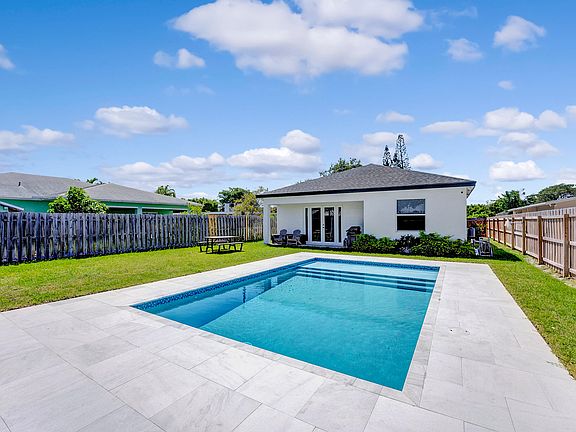 Experience the epitome of modern living in this meticulously crafted, 2022-built, new construction home featuring 3 bedrooms, 2 bathrooms, and your very own private pool oasis. Step inside and be captivated by the contemporary design and thoughtful layout, showcasing an open-concept living area flooded with natural light. The heart of the home, the kitchen, is a chef's dream, featuring sleek quartz countertops, stainless steel appliances, LED lighting and ample custom 42'' cabinetry. Entertain guests in style in the spacious living room, or host intimate dinners in the adjacent dining area. Retreat to the luxurious Primary Suite, complete with 2 large closets (1 walk-in), views of the tranquil pool area, and a spa-like ensuite bath with dual vanities. 2 additional bedrooms offer flexibility for guests, a home office, or personal gym.