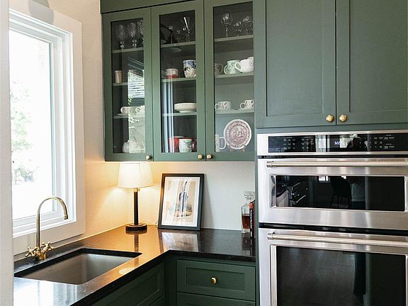 Wide plank light floorsRv storageQuartzite countertopsCovered storage areasOversized farmhouse sinkZelige backsplashDevol british taps