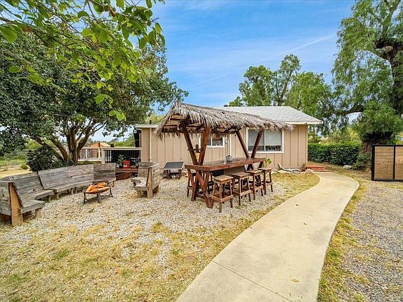 Welcome to this whimsical retreat nestled on half an acre of pure enchantment in Fallbrook. Beautifully renovated throughout, if you've been yearning to live large in a little house and escape the hustle and bustle of the big city, then look no further! This country cutie is here to whisk you away to a charming haven with its captivating western views and breathtaking sunsets that paint the sky in hues of gold and crimson. This property offers more than meets the eye. An oversized detached two-car garage is just begging to be transformed into a guest house/ADU! Need a space to indulge in your hobbies or tinker with projects? Check out the fully finished workshop is equipped with electricity, AC, and even a sink for your convenience. Bring your toys there is plenty of space and RV hookups! A new deck awaits you and your evening beverage, providing the perfect vantage point to watch the breathtaking sunsets that grace the western horizon. Two walk-in closets offer ample storage space for your treasures and keep your living area clutter-free. Newly refinished real hardwood floors add an element of elegance and grace. Imagine strolling through your very own garden complete with sprinkler system to keep your garden blooming with joy. Enjoys fresh eggs from your own chicken coop. The possibilities are endless on this flat, half-acre+ lot with ample space for your imagination to roam! So come, step into this whimsical world of country charm where dreams come to life. Make this enchanting property in Fallbrook your own, and let the magic of this half-acre retreat embrace you!
