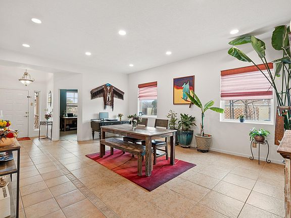 What makes this home so much better than similar ones in the area are All the Improvements and Upgrades! The owner intentionally built a home on a corner lot with a floorplan that ensured plenty of natural sunlight in the only NON HOA area of Cabezon. Landscaped garden backyard including new drip system, raised deck w/electricity, flagstone/brick designed extended patio. See photos to show what to expect come the spring! Addt'l yard area was created by extending the sidewall and a custom side yard access gate. The Kiva fireplace and banco with tile inlays was built for the ultimate gathering place. High-end kitchen appliances, new recessed lighting added to both living areas, kitchen and nook. Carpet only in bedrooms, insulated garage, all living areas painted June 2023,