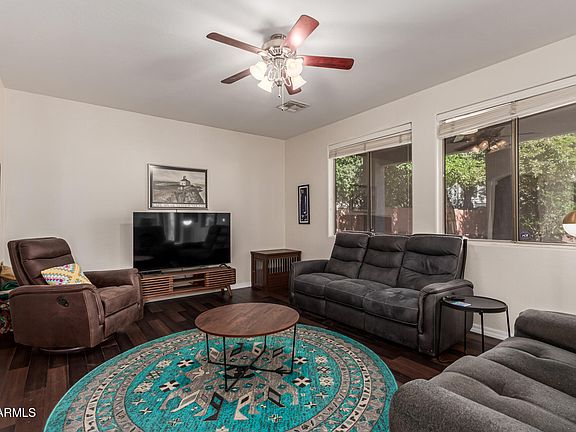 Home, sweet home! Tucked away on a peaceful cul-de-sac in Settler's Crossing, this charming 2-story gem has it all! Inside, enjoy a cozy living room with smooth maple wood and bamboo laminate floors. The kitchen shines with stainless steel appliances, granite counters, a stylish backsplash, delightful built-in cabinets, and a peninsula perfect for morning coffee or casual bites. Vaulted ceilings add an airy feel, while the primary bedroom offers a true retreat with dual sinks, a soaking tub, and a roomy walk-in closet. Need a workspace? The den has you covered! Outside, relax under the covered patio or take a dip in your sparkling pool ideal for barbecues and weekend fun. Grab some lemons off the lemon tree to add fresh citrus for your backyard get togethers. Just a few steps away, enjoy the large gorgeous park with endless green grass. Close to freeways making any trip to Sky Harbor Airport, Downtown Phoenix, Tempe, and Scottsdale just minutes away! A wonderful home in a fantastic neighborhood, don't miss your opportunity to call it home!