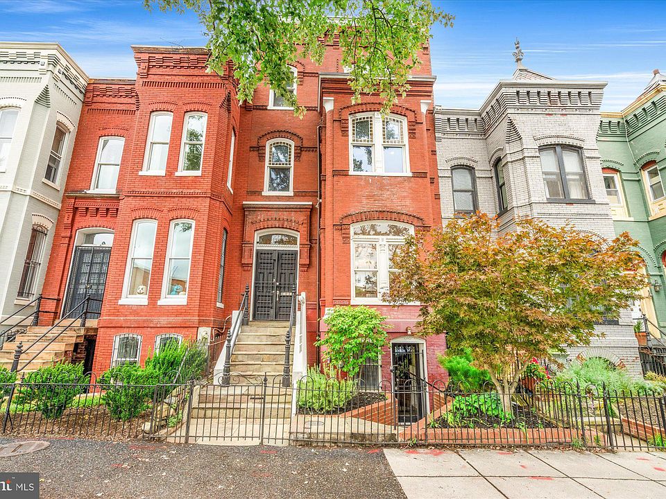 Welcome home to 1209 S St NW, a historic townhouse with four bedrooms, four and one-half baths with multiple roof decks and dedicated, secure off-street parking in the heart of DC. This home is overflowing with traditional details and boasts thoughtful updates and modern conveniences throughout. Step into the home via a formal entryway and be greeted by a grand staircase with the original bannister. Just off the foyer to the right is a spacious and abundantly bright formal living room with high ceilings featuring crown molding and a fireplace. The original pocket doors lead you to a large dining room with an additional fireplace. Just past the dining room is a bonus family room, that leads to a beautifully updated chef's kitchen with massive skylights that make the space extra bright and airy. The main level has direct access to the backyard that features a deck, flagstone patio and secure two-car off-street parking. The lower level includes a bonus family room and is highlighted by a custom wine cellar featuring original exposed brick. Ascend the staircase to the second level which features two light-filled bedroom suites. The primary suite includes a sitting area with a stunning original ornate fireplace and mantle. Custom built-ins and a walkthrough closet lead to the primary bath which boasts dual vanity sinks, a steam shower and separate water closet. A laundry closet completes this level. The upper floor has the third bedroom suite and a bonus living area that is perfect for a home office, gym or den with two large closets for storage. From this level, step out to the jaw dropping two-story roof deck, with spectacular city views. The property also includes a separate one-bedroom, one-bath plus laundry suite on the lower level with its own front and rear entrances. A perfect in-law or au pair suite, this unit is an amazing bonus space, or alternatively is ready to be utilized as an income generator. This rarely available, full-size townhome with separate rental unit is located on the same block as neighborhood favorite The Coffee Bar and minutes away from all of the shops and restaurants of Logan Circle and 14th Street. First Open Houses Saturday and Sunday October 11 + 12 from 12 - 2 PM, this opportunity is not to be missed.