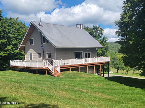 Perfect Vermont Getaway! Chalet Home on 24 acres with open land, a private pond, some woods & access to hiking trails & VAST Snowmobile Trails. Be in the Green Mtn National Forest without getting into your car! Offering 3 bedrooms, 3 baths, open floor plan, fireplace, wood floors, great natural light & cathedral ceilings. 1st floor bedroom & bath. 2nd floor with balcony that looks down below, 2 bedrooms & full bath. Basement with entry, laundry & bath. Enjoy the wrap-around deck as you look over your very own nature's paradise & mountain views. Its the perfect location to enjoy the best of Southern Vermont recreation & tranquility as well as the myriad cultural attractions with Mass MoCA just 20 minutes away. Boating, whitewater rafting & skiing close by.