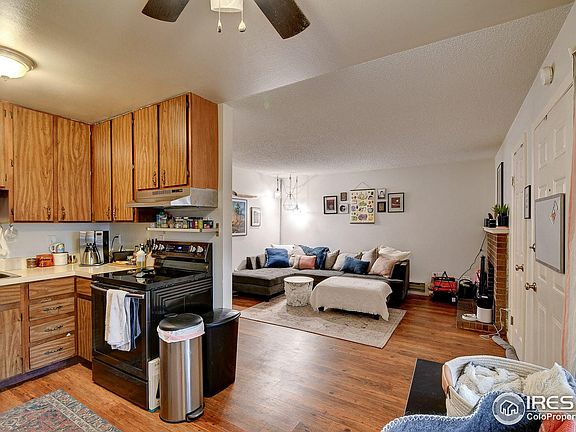 Sunny end-unit 2 bed 1 bath condo, garden level, just 2 blocks west of CSU, and steps away from all of the restaurants, bars, and shopping on W. Elizabeth. Newer vinyl flooring and carpet throughout, 3/4 bath, south-facing patio w outside storage closet, wood burning fireplace. Washer & dryer, refrigerator, dishwasher, and electric oven-range included. Primary bedroom has wonderful walk-in closet. Two resident parking permits included with unit. Tenant occupied, do not disturb tenant. Max of 1 dog (up to 15#) and 1 cat permitted by HOA.