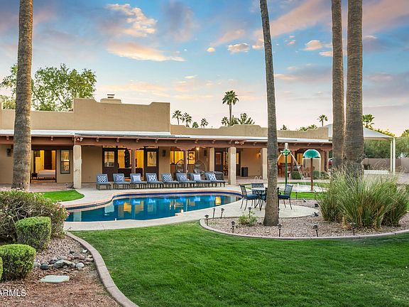 Massive Price Reduction! This Sonoran paradise in the Cactus Corridor on a private cul-de-sac welcomes you with a desert landscape, towering saguaro cacti and classic Southwestern architecture. This massive home is a rejuvenating retreat featuring private pool, spa, sand volleyball court, splash pad, shuffle board and more. Spacious and expansive floor plan consists of 5 bedrooms, 3.5 baths, an office and a game room. Host your family barbecue on the stunning outdoor dining space. Lounge under the shade of the wood awning, with the ceiling fans to keep you cool. When the sun sets, you can fire up the grill and enjoy the meal outside in the most luxurious desert ambience. Large covered carport allows for parking all the toys. Property is currently an active AirBnB, professionally managed.