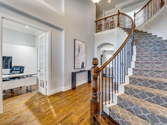 The moment you arrive you will be greeted with stone-edged flower beds, professional mature landscaping and a striking elevation with cast stone edged details around porch, entrance door and windows. Step inside and you will be greeted with nailed down hardwoods to the main living areas and plantation shutters throughout the home. Executive study light and bright with white built ins for all your storage needs, double glass doors to add a sense of privacy when working from home. Formal dining room perfect for entertaining. Family room with built-ins a featured gas log fireplace. Gourmet kitchen with painted cabinet, breakfast bar, stainless steel appliances, double oven, gas cooktop, large walk-in pantry. Laundry room with built-in cabinets and room for an extra refrigerator. Primary bedroom with frosted glass barn door leading to the remodeled en suite with dual vanities, marble countertop, large frameless walk-in shower, jetted tub, linen closet for storage and two well-appointed closets with engineered wood floors. Guest bedroom with closet and full bathroom. Upstairs you will enjoy a built-in study area and bookshelf. Engineered hardwoods to the two bedrooms sharing a jack and jill bedroom and the large game room. Media room. Large walk-in boarded attic area with shelves that will remain for all your upstairs storage needs. Outside you will enjoy a board-on-board fence with a sparkling pool and spa, covered patio with pergola, built-in grill and kitchen area. Three car garage with built in cabinets, ceiling storage racks, whole home water filtration system, epoxy flooring, wall PAC AC unit. Finishes this wonderful home off to perfection.