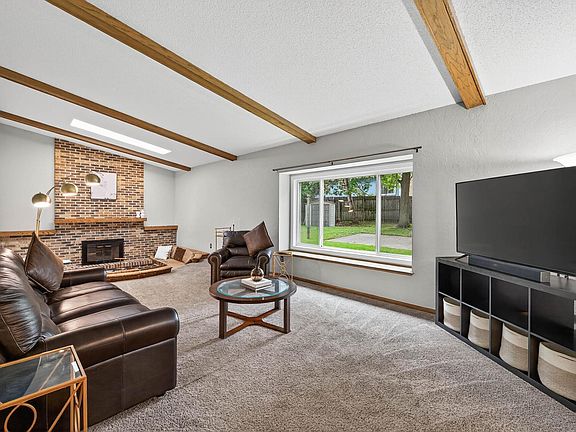 Located in Coon Rapids on a quiet road that ends in a cul-de-sac, this spacious 2-story home offers over 3,500 finished square feet of living space on a large 0.27 acre lot. With five bedrooms (three on one level) and four bathrooms, this home has both comfort and all of the space you are looking for. The main level features a beautiful living room, a warm and inviting family room, and a formal dining room, along with an informal dining space that opens directly to the back patio—perfect for grilling or enjoying meals outdoors. The unique family room showcases vaulted, beamed ceilings with a sunken seating area surrounding a brick fireplace, bringing a touch of mid-century modern character to the home. The kitchen is equipped with stainless steel appliances, abundant cabinetry, and a convenient breakfast bar. Upstairs, the spacious primary suite includes a walk-in closet, ensuite bathroom, and charming window seat. The fully finished basement adds even more versatility with a family room, flex space, full bathroom, two bedrooms, and plenty of storage. Large windows throughout the home provide natural light, with some highlighted by window seats. You’ll love having a fully fenced back yard with two patios, a storage shed, and trampoline, offering both space for relaxation and play. Additional highlights include a three-car garage, newer roof, water heater, and water softener. This home gives you plenty of room to grow and is ready for you to make your own!