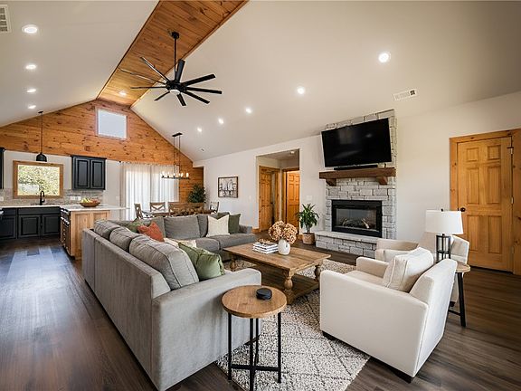 Welcome to 12092 Guyll Ridge Road, where rustic charm meets modern comfort. This beautiful, nearly new home features an open-concept layout with vaulted wood ceilings, luxury vinyl plank flooring, and a striking stone fireplace. The kitchen shines with quartz countertops, stainless appliances, rich cabinetry, and a warm wood island centerpiece. The primary suite offers a spa-like bath with dual vanities and a tiled shower. Enjoy mornings under the inviting front porch or evenings on the private back deck with scenic views on your one acre lot. Nestled just 10 minutes to Beaver Lake, 15 minutes to Downtown Rogers, and 25 minutes to Bentonville, this home offers convenient access to dining, shopping, and the region’s top employers while maintaining a quiet country feel. Move-in ready and beautifully finished, this is Northwest Arkansas living at its best.