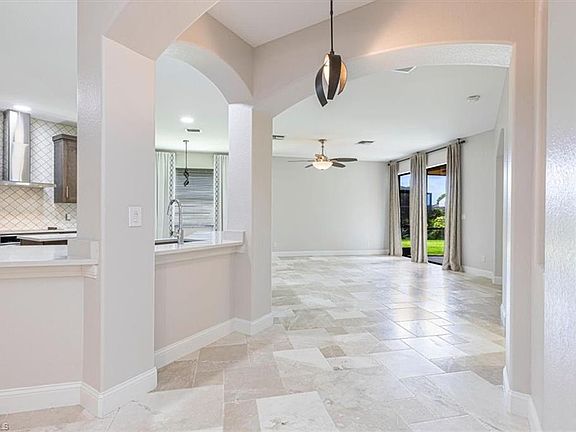 Stunningly reimagined waterfront home in Gateway at Daniel’s Preserve, offering luxury upgrades that make it feel like new construction. The main level showcases elegant tumbled marble floors and a spacious open living area. The chef’s kitchen features custom rustic maple cabinetry, striking quartz countertops, and premium stainless appliances. The master suite is a true retreat with porcelain wood-grain plank tiles, upgraded custom closet treatments, and a spa-inspired bath highlighted by crushed quartz sinks on solid rosewood counters. Upstairs, a massive suite with serene lake views and premium carpeting provides the perfect guest, family, or in-law space. Peace of mind comes with a 2021 Spanish Barcelona tile roof and newer AC. The expansive backyard offers plenty of room for a custom pool while enjoying long, peaceful lake views. Even the garage has been elevated with epoxy flooring, upgraded cabinetry, and a custom workbench area, making it as functional as it is stylish. Community amenities include a clubhouse, pool, and spa, all with convenient access to I-75, RSW Airport, JetBlue Park, Gateway Brewery, and Gulf Coast Town Center. A rare opportunity in one of Fort Myers’ most desirable locations.