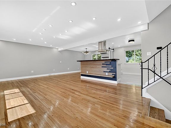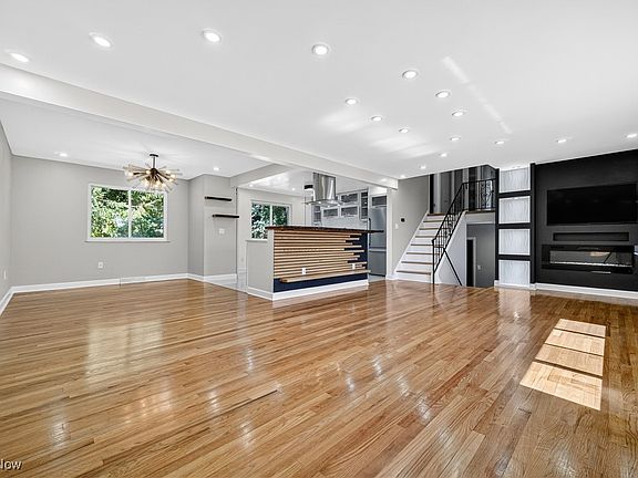 This Garfield Heights split-level home is in a league of it's own. Fully renovated, this home features 3-bedrooms, 2.5-bathrooms with a lower level that could be used as a rec room or an additional bedroom. The kitchen is a showstopper with top-of-the-line appliances, an impressive waterfall sink, a tucked away coffee bar and microwave, five-burner gas stove, luxury tile flooring, and a unique, live edge breakfast bar counter featuring a cherry wood slab sourced from Geauga County. No detail was spared in the bathrooms that were tastefully designed featuring premium fixtures. Enjoy new flooring throughout, modern recessed lighting, and an eye catching fireplace with built-in 50" TV. Outside you'll find a well manicured lawn and a fire pit in the backyard to enjoy as the summer nights wind down. Located on a quiet street with easy access to shopping and the highway this home has it all. Schedule a private tour today.