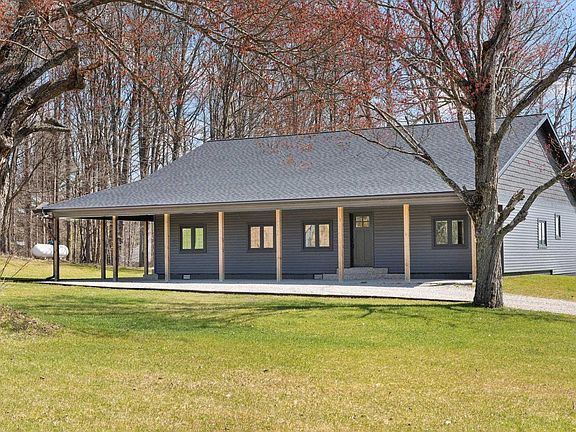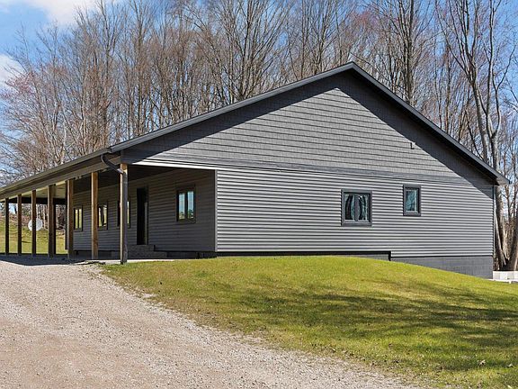 Escape to your own private paradise on 5 acres of pristine land with this beautifully updated 3-bedroom, 3-bathroom home. Tucked away in a tranquil setting, this home boasts an inviting open floor plan, perfect for modern living and entertaining. Step inside and be greeted by a spacious kitchen and dining area, complete with custom finishes and ample space for gatherings with family and friends. The primary master suite offers a luxurious retreat with a walk-in closet and a private bath featuring a custom shower and tile floor. Two additional main floor bedrooms provide comfort and convenience, along with a beautifully updated bath and main floor laundry. The spacious living room is the perfect place to unwind and relax after a long day. The partially finished walkout lower level adds even more living space, while the walkout lower level patio and beautifully covered front porch provide outdoor areas to enjoy the serene surroundings. But the amenities don't stop there—this property also includes a 40x88 pole barn/workshop with two 12x12 doors, one 12x13 door, and a half bath. With newer heat pump and central air installed in both the home and the workshop, you'll stay comfortable year-round while pursuing your hobbies or projects. All of this is nestled on 5 secluded acres of privacy, offering a peaceful retreat from the hustle and bustle of everyday life.