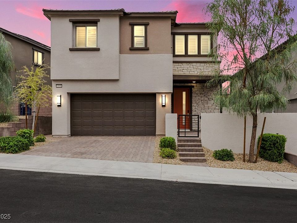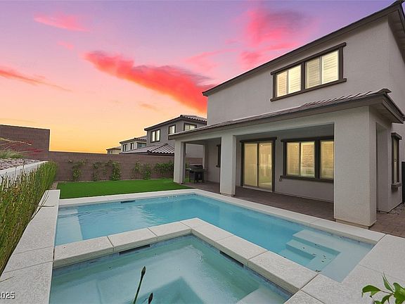 Discover unparalleled sophistication in this bespoke estate, perfectly situated within the exclusive gated enclave of Castellana in Summerlin. A rare blend of refined elegance and contemporary design, this 4-bedroom showpiece with loft and a den boasts open concept living-perfect for entertaining! Upstairs you'll find a spacious loft, and over $150K in custom upgrades throughout!! Step inside to soaring ceilings and curated finishes with ceramic tile flooring. The chef’s kitchen is a vision of modern opulence, featuring custom white cabinetry, a statement island and Stainless steel appliances. The primary suite offers a spa-level sanctuary with a seamless glass walk-in shower with Tub and refined finishes. Outside, indulge in your private resort-style escape—complete with a pristine spa with waterfall and pool which has its own current to swim against! Just minutes from Fox Hill Park, Downtown Summerlin, 215 Freeway- this home defines luxury living in Summerlin and is a must see!!!