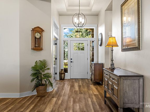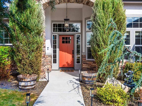 Located in one of Star's most sought after subdivisions; The Lakes at Pristine Springs. This beauty blends comfort, & cozy with grace and elegance. Front entry opens to a gorgeous great room with soaring ceilings, fabulous stone fireplace, a beautiful built -in & loads of windows providing the perfect amount of natural light. Great room seamlessly flows into a chef’s dream kitchen and dining area. Kitchen features white cabinetry, quartz countertops, double ovens, gas range, built-in microwave, spacious island, and a walk-in pantry! The primary suite is light, bright and very spacious. Includes private access to patio. Spa-like ensuite features dual vanities, a soaking tub, walk-in shower as well as a walk-in closet. Second bedroom is a junior suite. Perfect for family members and/or guests. Third bedroom as well as office/den are also generously sized and offer flexibility to suit all needs. Covered patio opens to a beautiful water feature, ample room for patio furniture and your favorite BBQ or smoker. Generous lot size features well manicured landscaping and is fully fenced with vinyl fencing. Garage and RV bay are the ultimate wow factor! Includes a 240 hookup as well as spicket for hose bib. Perfect for vehicles, RV and any additional toys! Home is plumbed for central vac.