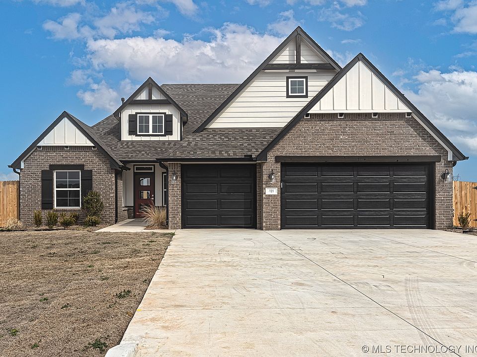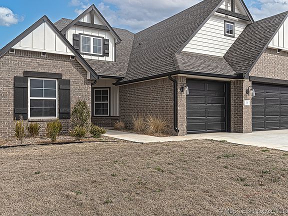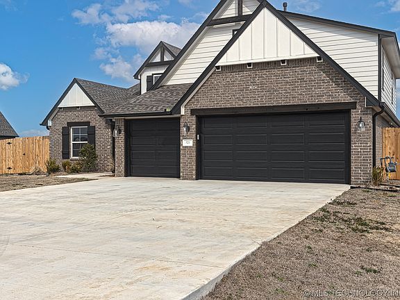 NEW CONSTRUCTION. Introducing the Taos Plan by Butler Homes. Hallmarked by a fresh Living Room, Kitchen, and Dining Room layout along with 3 bedrooms plus 4th bedroom or a flex room, 2 full bathrooms, and a 3 car garage all on one level. Upstairs features two bedrooms, a full bathroom, and a game room with a closet. A true 5 bedrooms plan PLUS Game room AND Office. Brand new full privacy fence surrounds the huge, private 1/2 acre lot. Luxurious interior finishes include gas stove with griddle, trash pullout on the island, spice & utensil pull outs, butler’s pantry/prep kitchen area near pantry with microwave and floating shelves, versatile wood-look tile flooring in entry, living room, kitchen, dining/nook, pantry, flex/study, & hallways! Vaulted living room with beams. Premium building standards include James Hardie siding, Douglas fir framing, Foil backed radiant barrier roof decking, R-15 BIB insulation in perimeter walls, R-38 blown in insulation in attic, energy sealed exterior bottom plates at slab around perimeter walls, and exterior penetrations, doors, and windows are foam sealed to minimize air leakage. List of features in documents. Elwood Crossing is Glenpool’s favorite neighborhood just minutes from schools, shopping, groceries, and HWY 75. Go see your new home today!