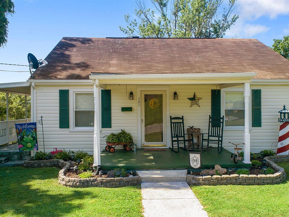Adorable home newer heat pump (2017),replacement windows, some updated plumbing and vinyl exterior. Master bedroom is located on the main level with a nice closet, ceiling fan and hardwood floors. Kitchen features range, refrigerator and dishwasher. Remodeled bath with newer vanity, tub, flooring and lighting fixtures. Full walk out basement with plenty of storage space. Rear deck and side covered porch for outdoor enjoyment.