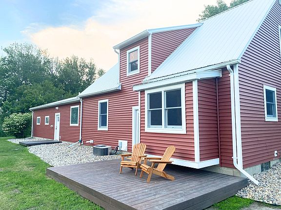 35 minutes east of Sioux Falls you will find this completely remodeled 5.42 acre hobby farm with central AC, electric brick fireplace, large master bedroom with an ensuite bathroom, walk in closet and a quartz topped vanity. Custom kitchen cabinets, Cambria quartz countertops, and all new Cafe brand appliances. Two upstairs bedrooms with a Jack and Jill style bathroom. The main level bath features cast iron tub and large linen closets for ample storage. All bathroom fixtures have been updated! All hardwood floors with custom brick inlay leading to exterior doors. Exterior updates include new siding, exterior doors, steel roof, front and back composite deck. Freshly painted steeled roof barns. A large 1,200 sq ft three stall shop and a chicken coop with electricity. Wait there’s more! An 800 sq ft insulated hobby shop, heated AND cooled. It has a large stainless steel utility sink, front loading washer and dryer, epoxy floor, French doors, and white steel interior walls.