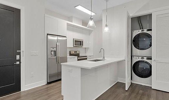 The kitchen is where the heart of your home is. Finished with quartz countertops and equipped with state-of-the art General Electric stainless steel appliances, ample soft-close cabinetry, and recessed lighting, every kitchen is a chef's dream. Our oversized bedrooms offer huge closets to hold your laundry, fresh from the full-sized washer/dryer in each unit. Expansive views of the city are available on higher floors, and every home benefits from thoughtfully chosen construction materials to assure privacy and comfort. All units boast grand scale Pella windows with custom solar shades, high-efficiency heating and cooling systems, and gorgeous LED light fixtures, including illuminated mirrors in the luxury baths. You will love coming home to spacious, well-lit hallways, wide-plank vinyl floors, and your beloved pets (allowed with a few restrictions).
