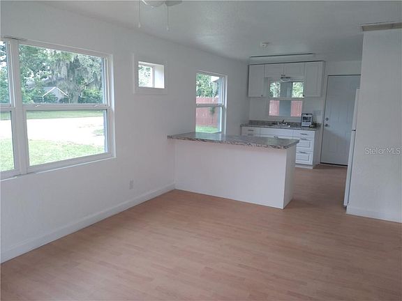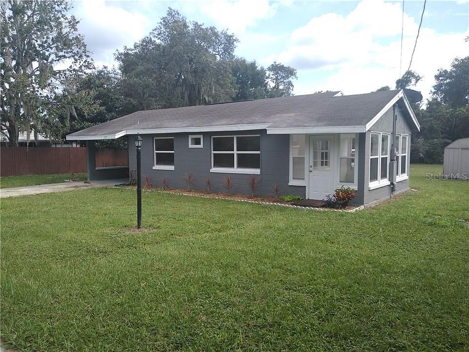 This 2 bedroom 1 bath home has been freshly painted inside and out and is in MOVE IN READY CONDITION!! The OPEN KITCHEN features new counter tops, new refrigerator, and a newer stove and microwave. Enjoy this cute as can be doll house with its lovely SUN ROOM under heat and air with lots of natural lighting. Ceiling fans in every room and laminate flooring through out. Live a stress free life with block construction, and a newer AC unit. Enjoy the weekends in your very own huge back yard or at one of the local springs. This home is perfectly located in the heart of Debary and very convenient to shopping, I-4, restaurants, historic home sites and lots more. Make this remarkable home yours.