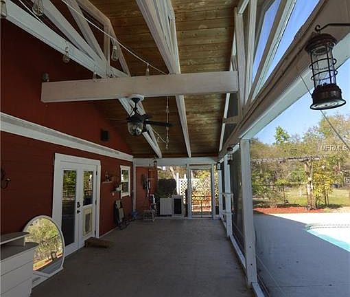 Unique find in Debary! Log cabin home situated on an acre of land. That's not all either! This beautifully maintained offers so much for everyone in the family. This split plan home has 3 bedrooms and 2 bathrooms with a possible 4th bedroom. The garage was converted into more living space. Spacious kitchen over looking the living room and french doors leading out to the large screened in lanai with a pool view. That's right this home has a pool too! Do not be discouraged about the garage converted into more living space because this home also has a 40x40 detached workshop with 3 large roll up doors, one door big enough for an RV to park. The landscaping and trees will give you that old time Florida vibe. This will not last long! Call your Realtor today!