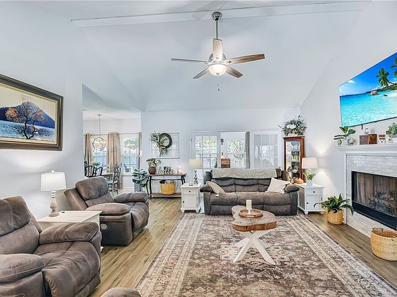 Since purchasing, the current owners have re-faced the fireplace, added LVP flooring throughout, replaced all the blinds, installed a whole house water filtration system, extended the backyard patio, added a fire pit, landscaped, replaced the wood fence and added a 12x20 shop with a roll up door.