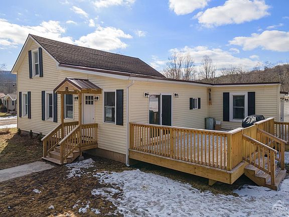 Updated farmhouse, perfect for a full time residence or second home! Farmhouse on 6 acres offers beautiful mountain views and a stream bordering the property, perfect for fishing, or taking a dip on a hot summer day. Renovated kitchen area and open floor plan to the living room make it easy to fit the entire family and sliding glass doors to the new side deck are great for relaxing outside. This 4 BR home is centrally located within 30 minutes of 4 ski areas and is heated with a outdoor wood furnace and electric for efficient and affordable heat. The outdoor property is a nice combination of flat usable land to make a large garden or have a small farmette for those looking to have animals. The barn has two usable stables and plenty of storage area. The rest of the property hugs the stream and then goes into the woods with a nice canopy of trees so you can sit stream side on a hot summer day. Central location in the Catskills for those looking to downsize, upsize or get away from it all. Near to all outdoor recreation that the Catskills has to offer!