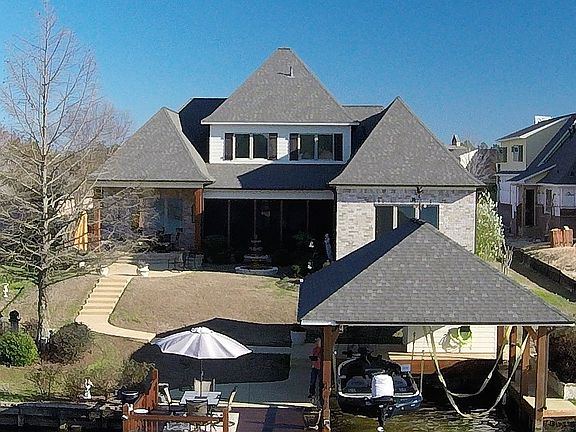 Luxury abounds at 121 Belle Pointe of Lake Caroline. Waterfront custom home has 4BR/3.5 BA. Enter through the gated courtyard with a kettle fountain to the grand foyer and staircase. Elegant living room with gas fireplace and built ins. Beautiful water views. Fabulous chef's kitchen with solid surface granite counter tops, custom cabinets, 5 burner gas cooktop with pot filler, double ovens, warming drawer, ice maker and wine cooler. Formal dining room on the front of the house. Or you can enjoy having dinner at the eat up bar or breakfast area that is open to the keeping room, all with views of the water. Enter the master bedroom thru the barrel ceiling and immediately notice the 10,11 and 12 foot tray ceiling and think about waking up to beautiful water views. Master bath has granite counter tops on 2 different vanities. Relax in the claw foot soaking tub or separate shower with hand held sprayer and 2 body sprayers. Massive walk around closet with built ins and drawers for plenty of storage. Also a cedar closet for your fine clothing. Guest suite is also downstairs with a private bath. Down the hall from the kitchen is a large butlers pantry, laundry room with sink and storage. For convenience it has a friendship door. The office has a built in desk. Upstairs is 2 other bedrooms, both with walk in closets. A Jack and Jill bath with mosaic tile counters and copper sinks imported from Cabo. There is also a bonus room that would be great for an exercise room, office or children's den. Just off the den downstairs is a screened in porch with brick pavers and tongue and groove wood ceiling. A covered porch with natural gas hookup for your gas grill. Walk down the stained concrete walkway to the double lift boat slip with a storage room and attic above. There is a deck over the water with rails. Yard features beautiful landscaping and a triple tier water fountain. Enjoy the big water views or take the boat out for a leisure ride or a great day of fishing. 26 foot deep garage with 3 separate doors that are 8' X 10', all insulated. It has a large storage closet(8'X16') plus extra room for a fridge or freezer. Other features include all antique pine wood/tile (no carpet), triple crown molding in all the rooms, irrigation system uses the water out of the lake. 2 tankless Rinnai water heaters, 3 Ruud AC units, R 38 blown in wall insulation. Wood clad single crank out windows throughout, 2nd floor built on manufactured trusses and tons of walk in attic storage. Walk in attic is attached to the pull down steps above the garage that is floored and could be converted to another room. Lake Caroline is situated on 3,000 acres of Madison County. Beautiful 835 acre private lake is the highlight of the neighborhood. Great for the residents who love to fish or just enjoy the day out on the water. For the convenience of boaters there is a 24 hour fuel pump and private boat ramp. The neighborhood has 2 clubhouses with tennis courts and swimming pools overlooking the lake. There is also several playgrounds and lots of green space in the neighborhood with walking trails and picnic areas. Also available is a private 18 hole championship golf course with a clubhouse that serves breakfast and lunches including a wonderful Sunday Brunch. Mermaid Café restaurant/Bar is open to the public with beautiful views of the lake.