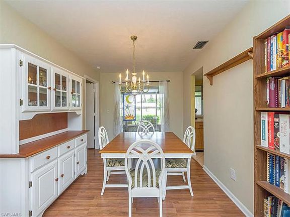 This well-maintained, pristine 3 bedroom/2 bathroom home is located in the peaceful neighborhood of Shenandoah Estates - one of Naples best-kept secrets. The floor plan has a great room set up with a casual dining area in the family room, split bedrooms, formal living and dining room, and convenient laundry room as you enter through the garage. Relax or dine on the large lanai with a view of an open landscaped area. Flooring is laminate and tile throughout. The 2-car garage also has a full screen door for optimal air flow during the beautiful winter months. The terrific location is close to grocery stores, restaurants and less than 5 miles to downtown Naples and the beach. The low HOA fee includes lawn/land maintenance, cable and Internet/wifi.