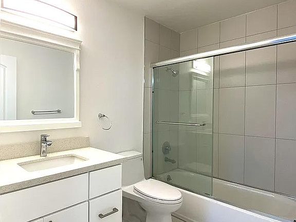 Modern cabinetryStainless steel appliancesRemodeled bathroomAmple counter spaceUpdated kitchenLaminate wood flooring