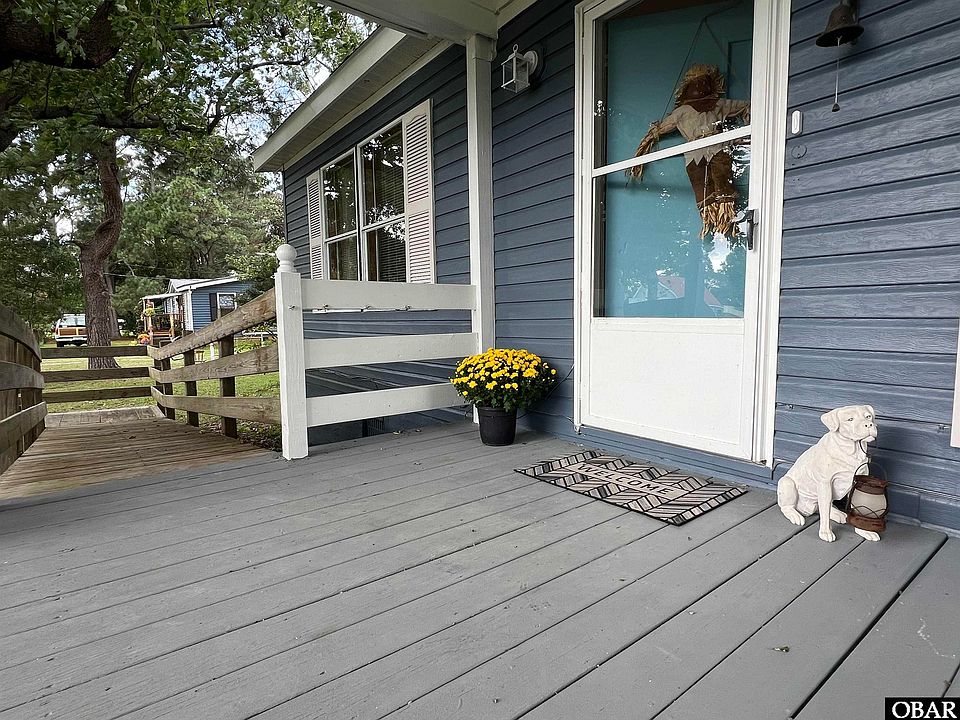Ready for peaceful country living? This newly remodeled home in Knotts Island offers just that. Tucked away from it all on almost a full acre with NO HOA, this home offers 3 spacious bedrooms and 2 full baths. A Large covered front porch with ramp access (if needed), Inside you are welcomed with a large den/sitting area. On your left is the oversized primary bedroom with ample closet space, large bathroom that provides complete privacy from the rest of the home. Stroll into a newly renovated kitchen with upgraded stainless steel appliances and cabinets for modern flare. Just off the kitchen is the dining area perfectly located for the family to gather together. To the right of the dining area is another oversized den/sitting area boasting a wood burning fire place, perfect for enjoying cozy evenings. Two more spacious bedrooms and a full bath with storage cabinet located to the far right of the home. A full size laundry area/ mud room is located off the rear covered porch. Out back you can enjoy an enormous deck & covered porch that provides ample room for entertaining. The large fenced in yard offers peaceful unobstructed views of nature, plenty of space for a garden, pool, etc. There is a storage shed located just off the rear porch, providing an area for wood working, crafting etc. If you are in the market for a new home, this one could be it. Newly remodeled inside and out plus all new plumbing. Reach out today to schedule your appointment.