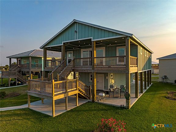 Perched on a stunning point, this perfect island-style home commands breathtaking views of endless sky and sea. Enjoy the beauty of nature from your extra-wide covered porch, or watch dramatic storms roll in through an expansive wall of impact-rated glass doors—designed for safety and strength without compromising the view. The open-concept floor plan is designed to suit both quiet living and lively gatherings, featuring two spacious owner’s suites, a third bedroom, and a versatile bonus room ideal for an office, bunk room, or guest space. High-end finishes flow throughout the home, including luxury vinyl plank flooring, custom cabinetry, and stone countertops. Thoughtful design details abound—from elegant cabinet hardware and stylish tile in the walk-in showers to modern lighting and soaring ceilings that enhance the airy, coastal feel. Outside, an oversized garage is deep enough for a boat and trailer or multiple vehicles, flanked by two covered carports for added convenience. Enjoy outdoor living with an outdoor shower, fish cleaning station, and fully automated irrigation system—everything you need for coastal life. But the true centerpiece? The view. Wide-open water and sky in every direction. Peaceful, powerful, unforgettable.