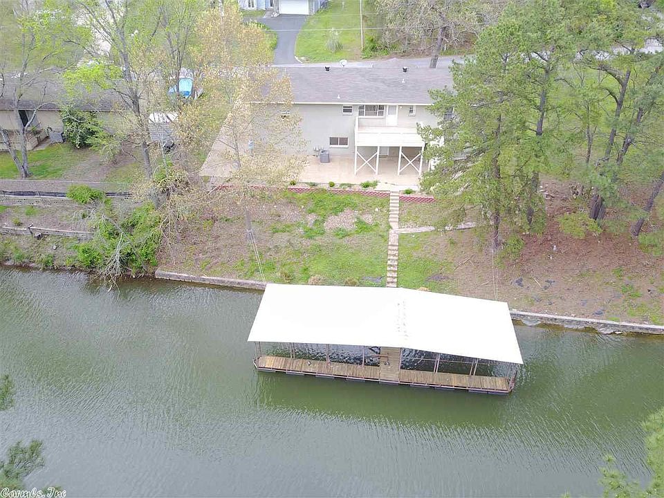 WOW! 2 Covered Boat Slips on Lake Hamilton!! 94' +/- Lake frontage w/ Rock Seawall on quiet cove just down from Sam's Pizza! NEW Paint, Appliances, Heat & Air, Flooring, lights, decking, Landscaping and much more! Could be 2 separate Living Quarters! Up- 2 BR's & 2 Baths, Big Liv Rm & large Kit/Din., workshop and Dbl Gar. Down has 2 BR's 1 Bath, Liv Rm and another kitchen! Great for In-Law Quarters, 2 families, or downstairs as game room and wet bar. Lots of options! RV Parking space. See Agent Remarks